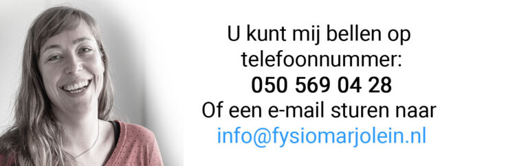 Fysio Marjolein biedt op de praktijklocatie in Groningen of bij cliënten aan huis in Stad, Ommeland en de kop van Drenthe fysiotherapie en thuiszorgtherapie.